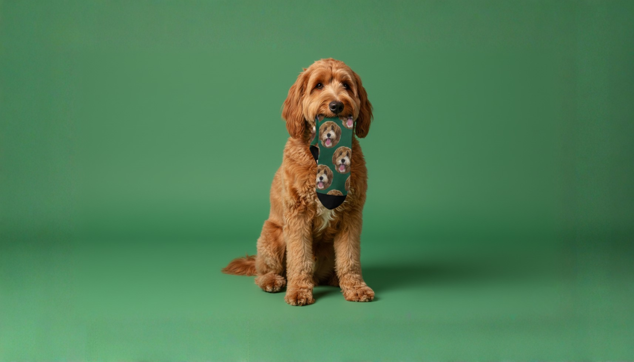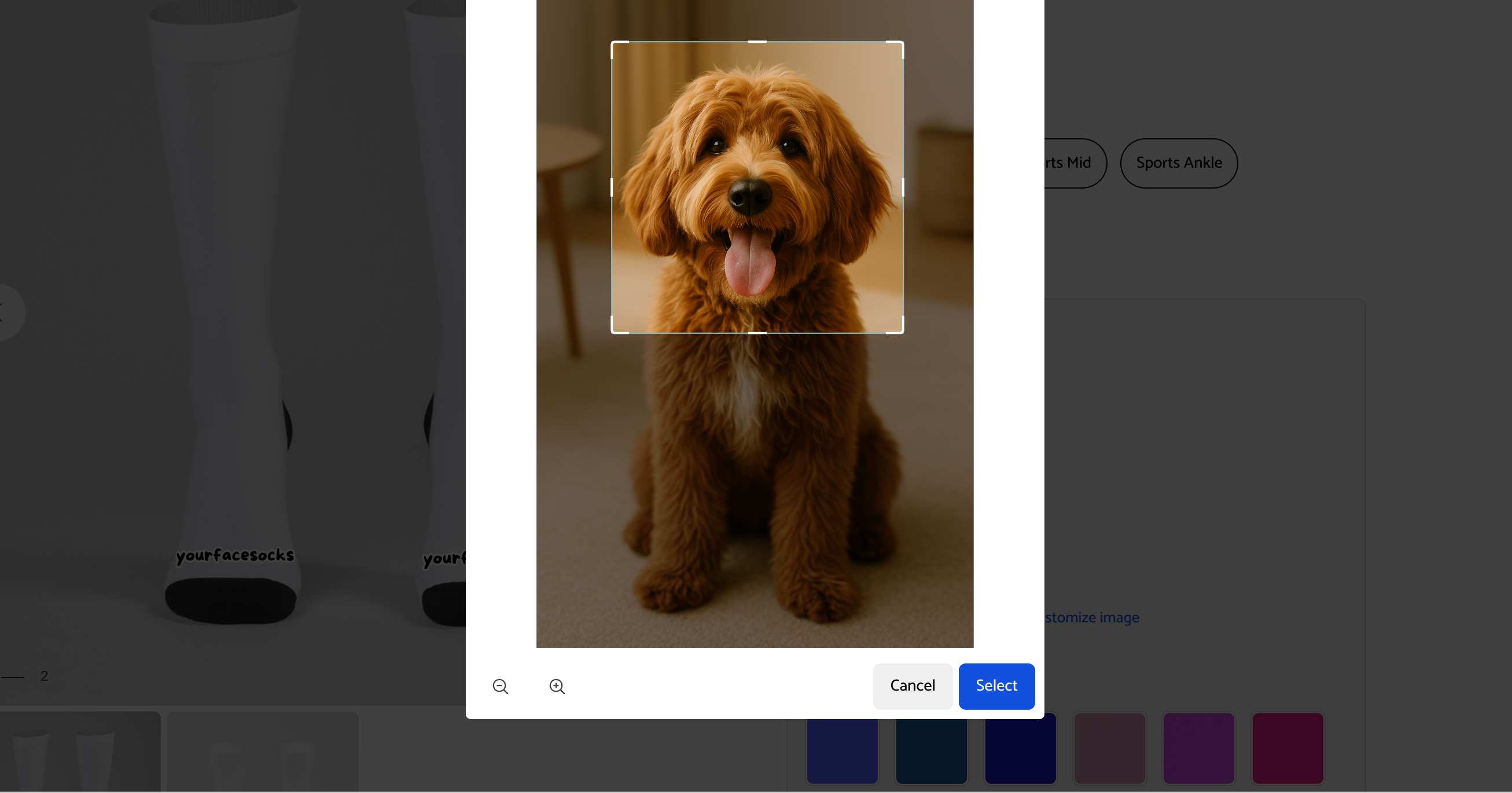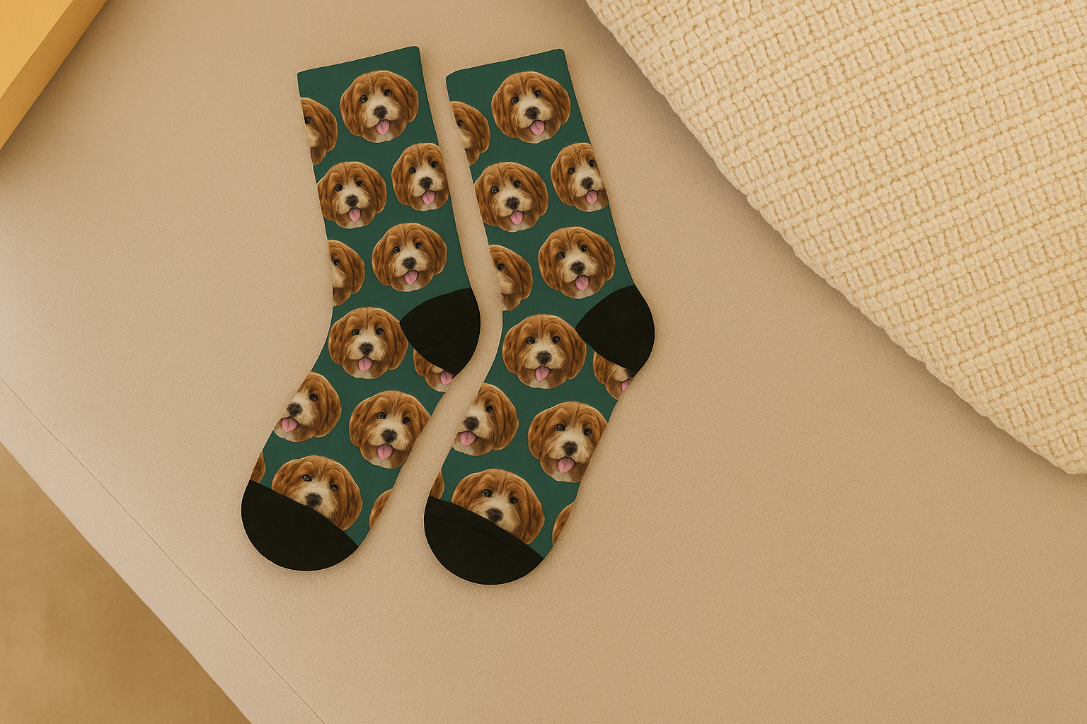 Upload the image, and we’ll automatically remove the background. Then, choose your sock color and background design.